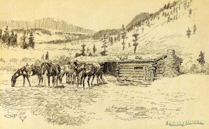 Where I Learned the Diamond Hitch - The Old Hoover Ranch on the South Fork of the Judith, Art Painting by Charles Marion Russell
