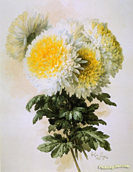White and Yellow Mums, Art Painting by Raoul de Longpre