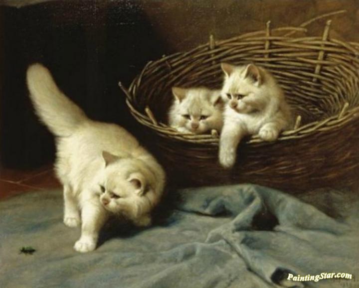 White Angora Kittens With A Beetle, Art Painting by Arthur Heyer