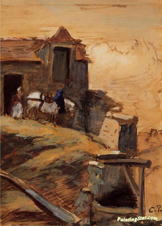 White Horse on a Farm, Art Painting by Camille Pissarro