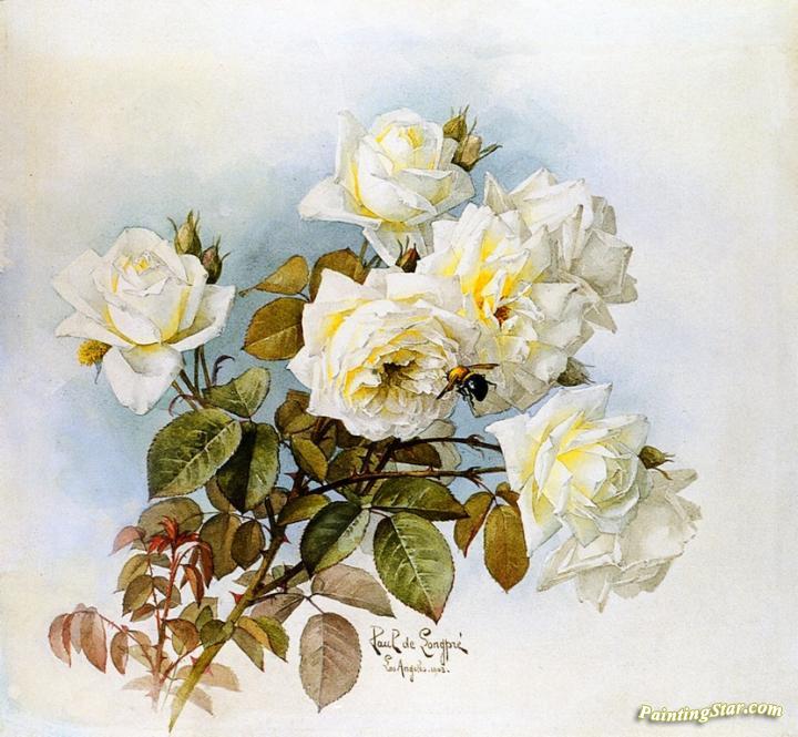 White Roses and Bumblebees, Art Painting by Raoul de Longpre