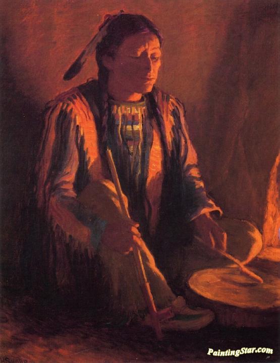 White Weasel - Taos Firelight, Art Painting by Joseph Henry Sharp