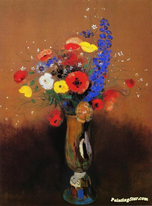 Wild Flowers in a Long-Necked Vase, Art Painting by Odilon Redon