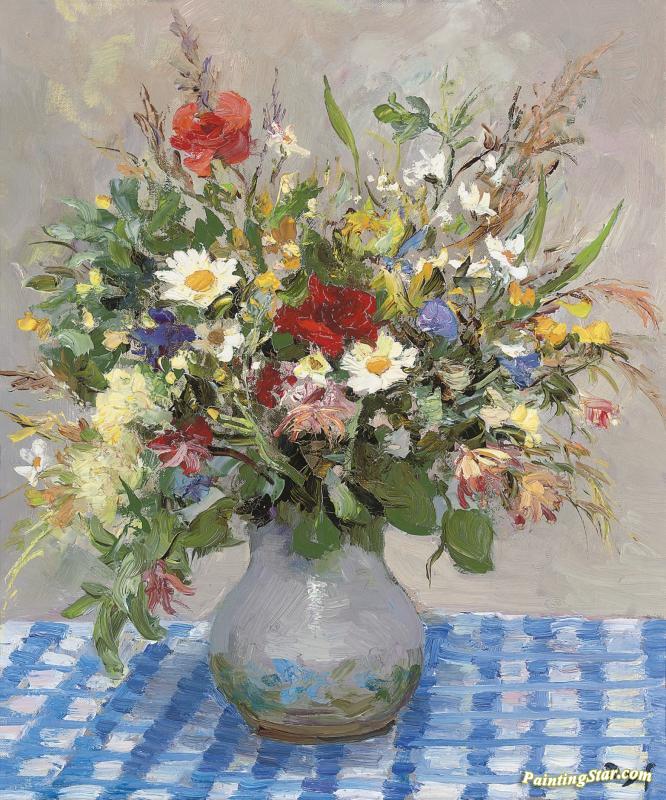 Wild Flowers On The Tablecloth, Art Painting by Marcel Dyf