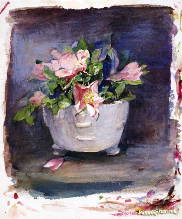 Wild Roses In A White Chinese Porcelain Bowl, Art Painting by John La Farge