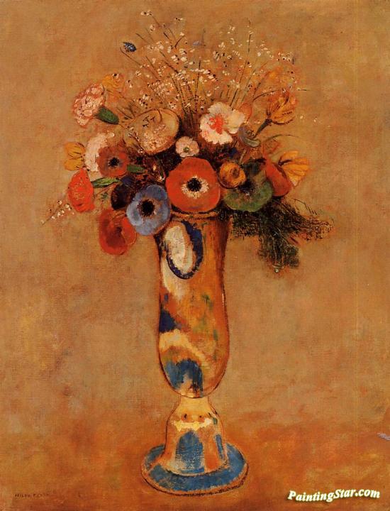 Wildflowers in a Long Necked Vase, Art Painting by Odilon Redon
