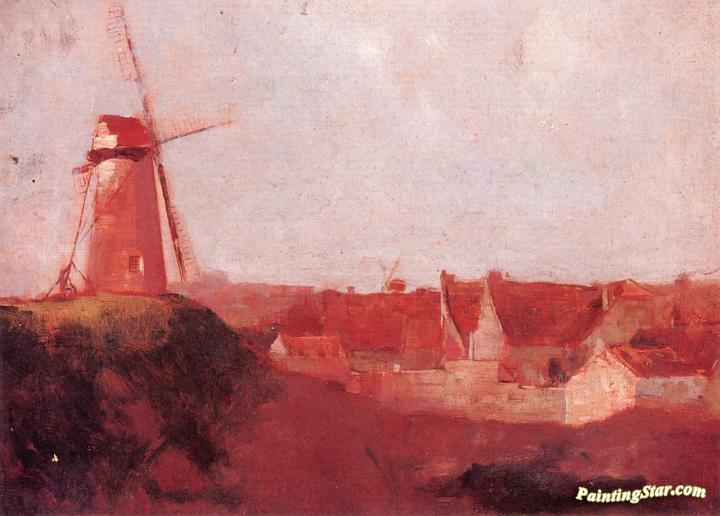 Windmill and Village, Art Painting by Odilon Redon