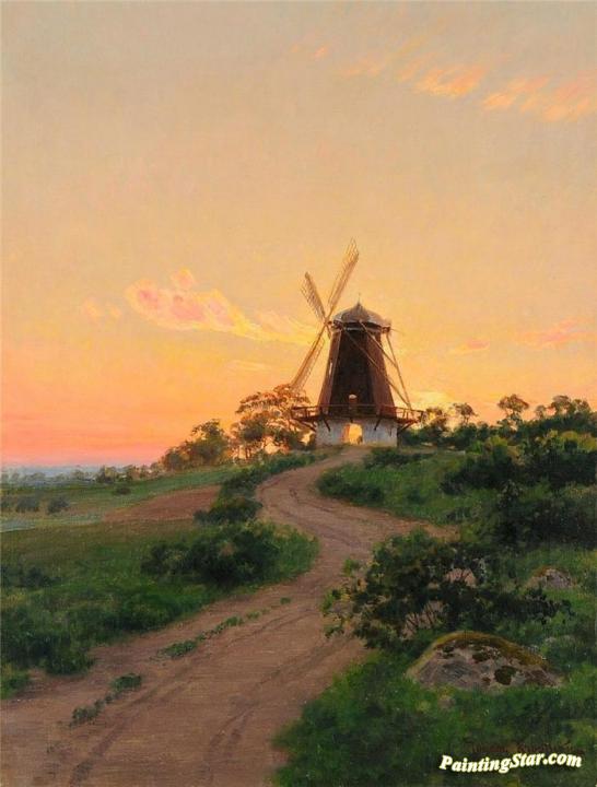 Windmill at sunset, Art Painting by Johan Krouthén
