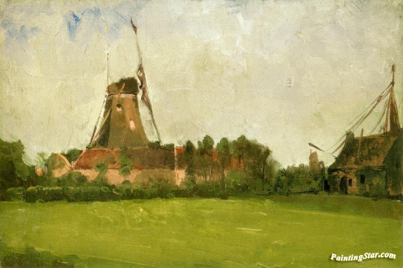 Windmill In The Dutch Countryside, Art Painting by John Twachtman