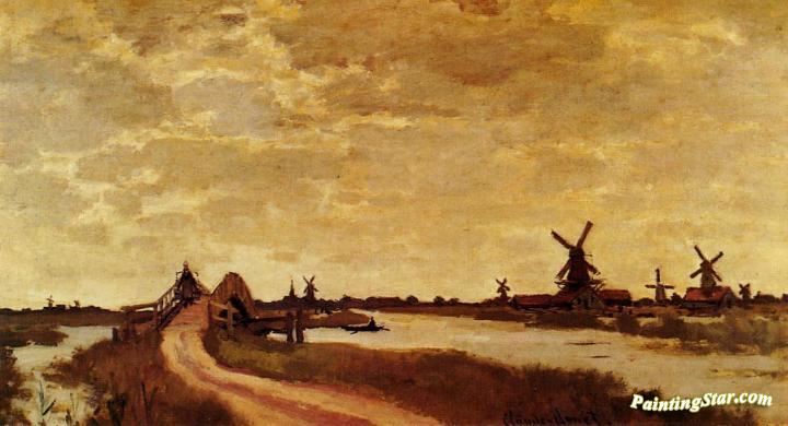 Windmills at Haaldersbroek, Zaandam, Art Painting by Claude Oscar Monet