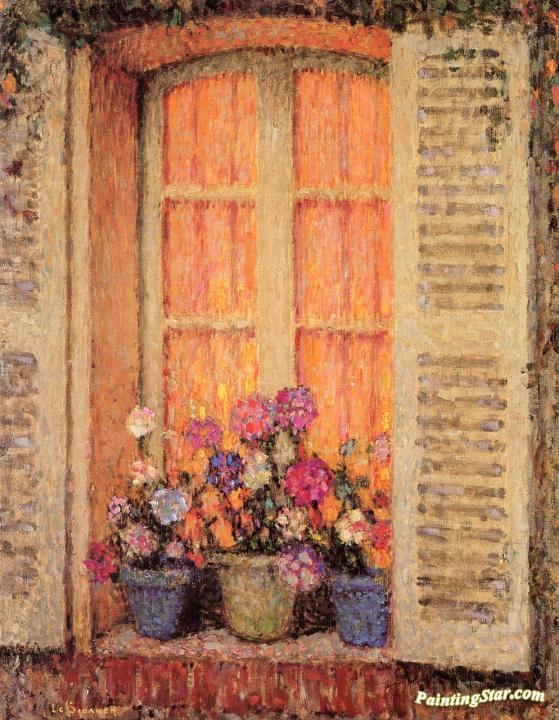 Window With Three Pots, Art Painting by Henri Le Sidaner