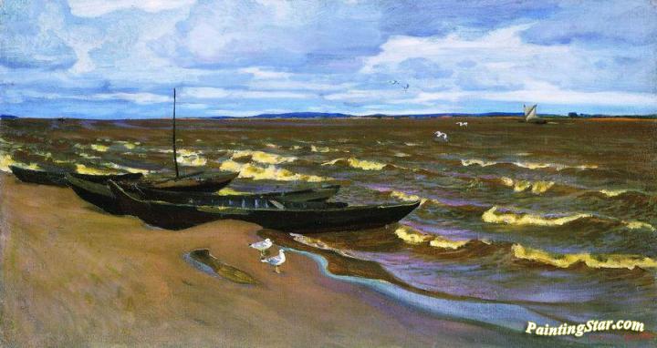 Windy Day on the Kama River, Art Painting by Arkady Rylov