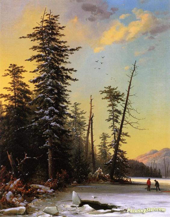 Winter Evening On A Lake At The Pine Swamp, Art Painting by Gustavus Johann Grunewald