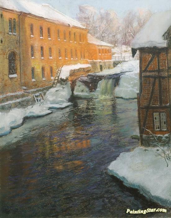Winter in Akerselven, Art Painting by Fritz Thaulow