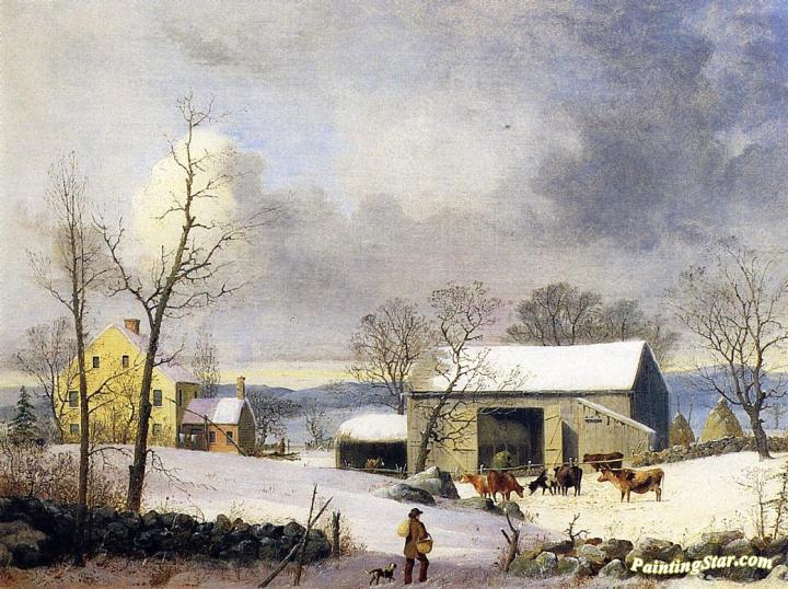 Winter in the Country, Farmyard, Art Painting by George Henry Durrie