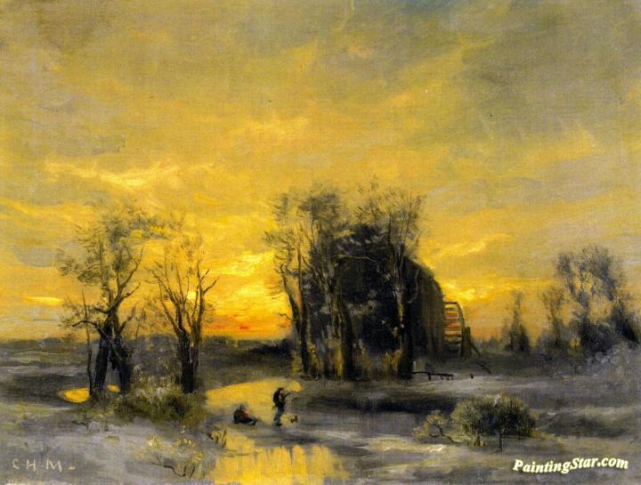Winter Landscape At Jane's Mill, Hempstead, Art Painting by Charles Henry Miller
