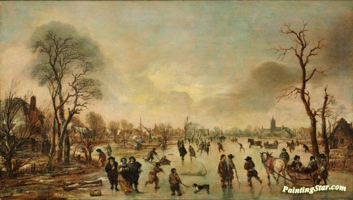 Winter Landscape With Ice Skaters, Art Painting by Aert van der Neer