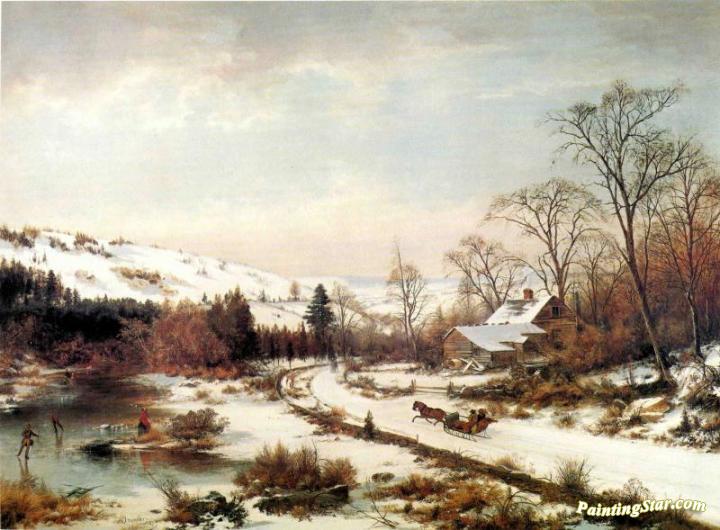 Winter Scene Near Medford, Massachusetts, Art Painting by Joseph Morviller