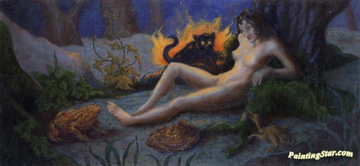 Witch with Cat, Art Painting by Paul Ranson