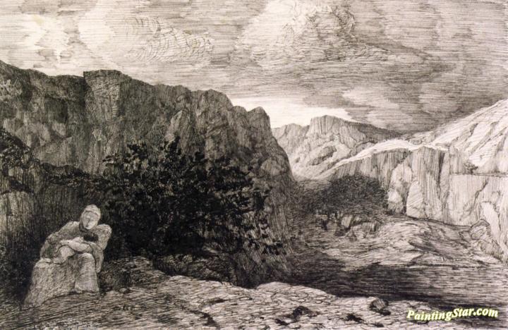 Woman and Child in a Rocky Landscape, Art Painting by Odilon Redon