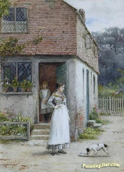 Woman and Dog Before a Cottage, Art Painting by George Goodwin Kilburne