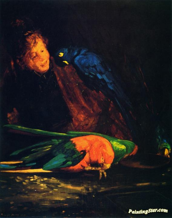 Woman and Macaws, Art Painting by George Benjamin Luks