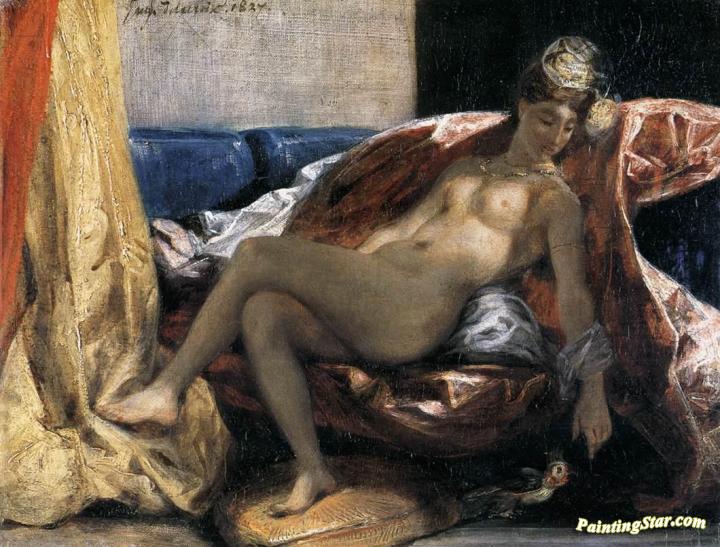 Woman Caressing a Parrot, Art Painting by Eugène Delacroix