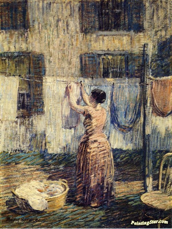 Woman Hanging Out Clothes, Art Painting by Robert Spencer