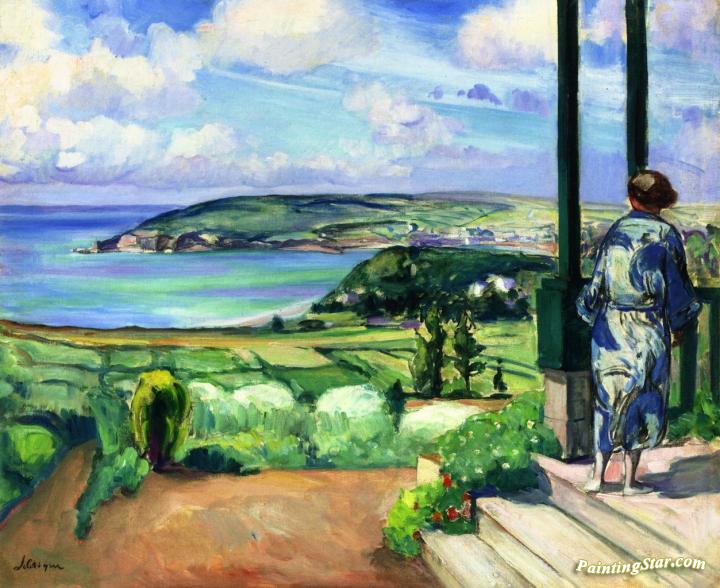 Woman in a Blue Peignoir before the Villa at Morgat, Art Painting by Henri Lebasque