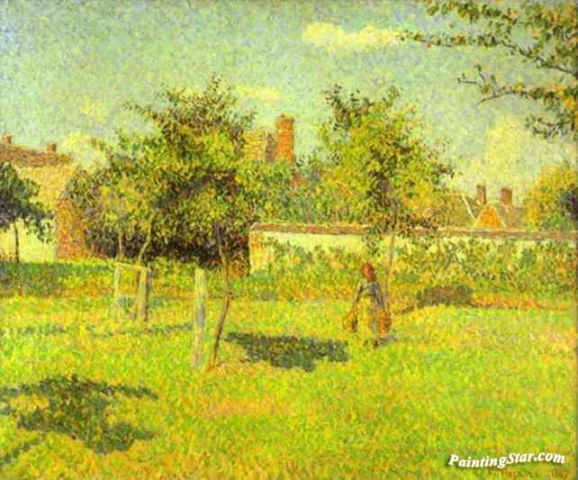 Woman in an Orchard, Spring Sunshine in a Field, Eragny, Art Painting by Camille Pissarro