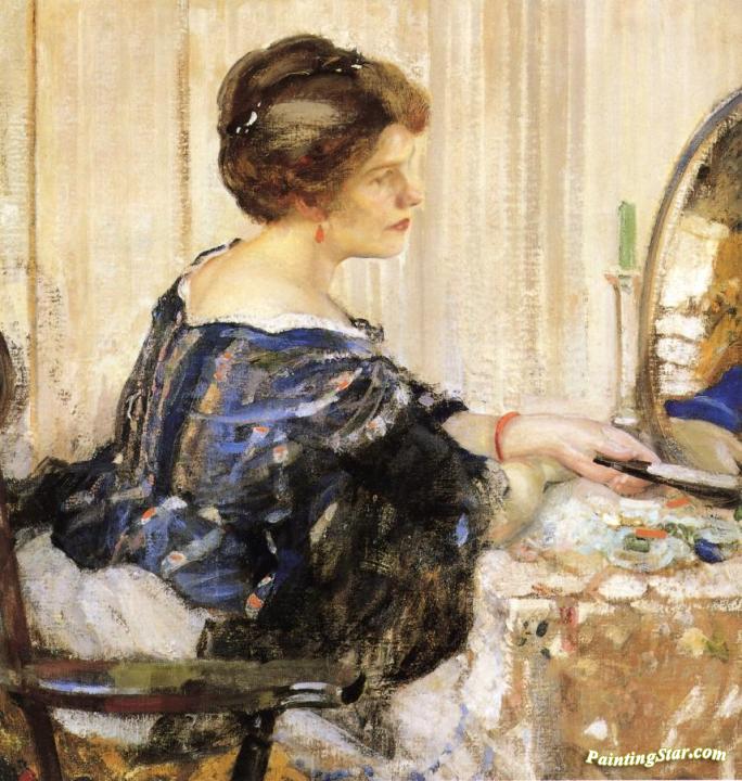 Woman in Blue Seated at a Dressing Table, Art Painting by Richard Edward Miller