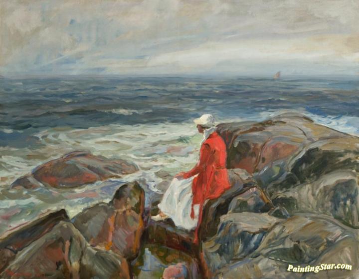 Woman Looking over the Ocean, Art Painting by Thorolf Holmboe