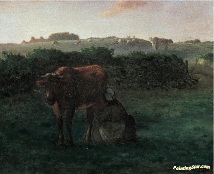 Woman Milking A Cow, Art Painting by Jean-François Millet