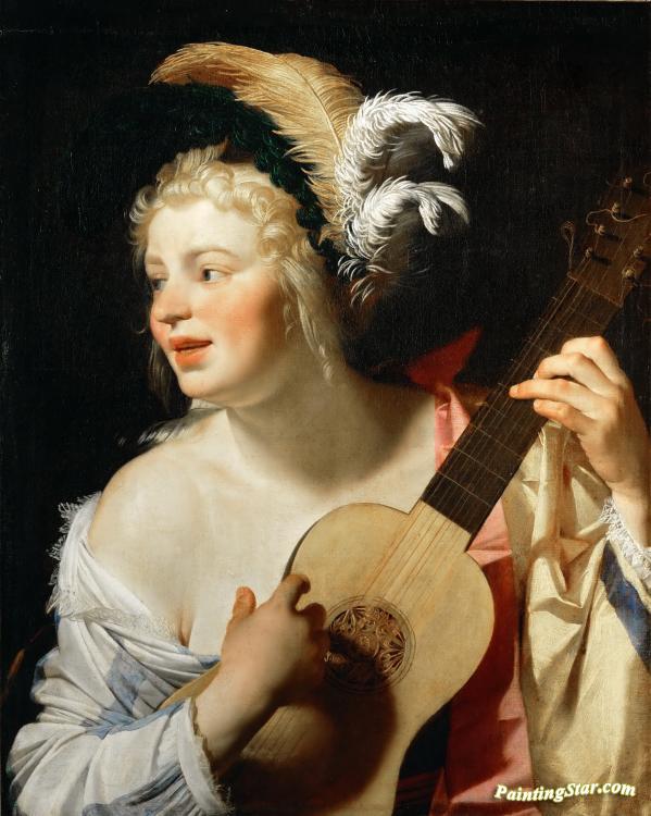 Woman Playing The Guitar(1624), Art Painting by Gerard van Honthorst