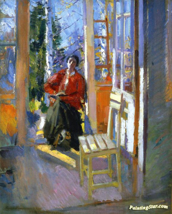 Woman Reading on the Terrace, Art Painting by Constantin Alexeevich Korovin
