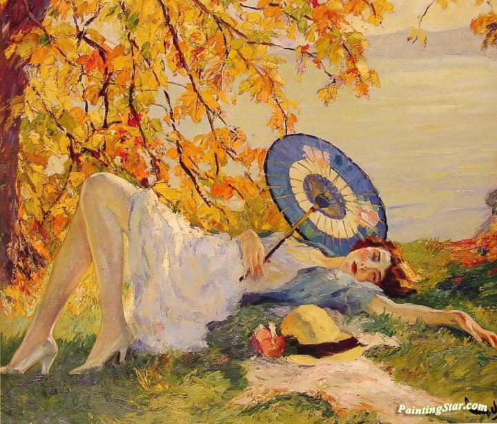 Woman Recling By A Lake, Art Painting by Edward Cucuel
