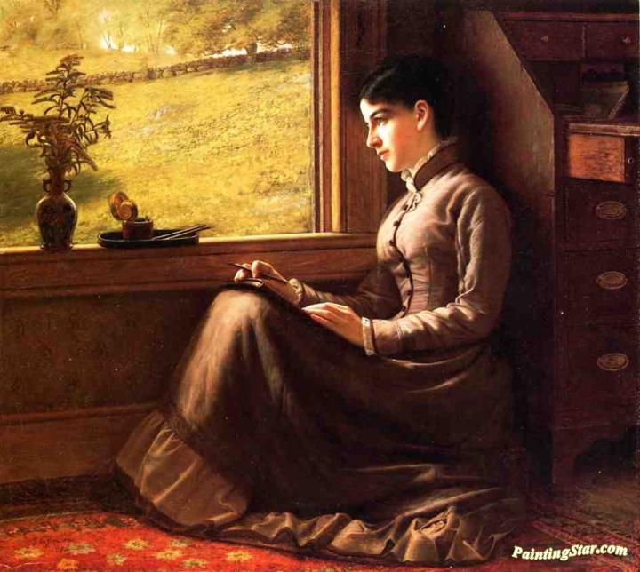 Woman Seated at Window, Art Painting by John George Brown