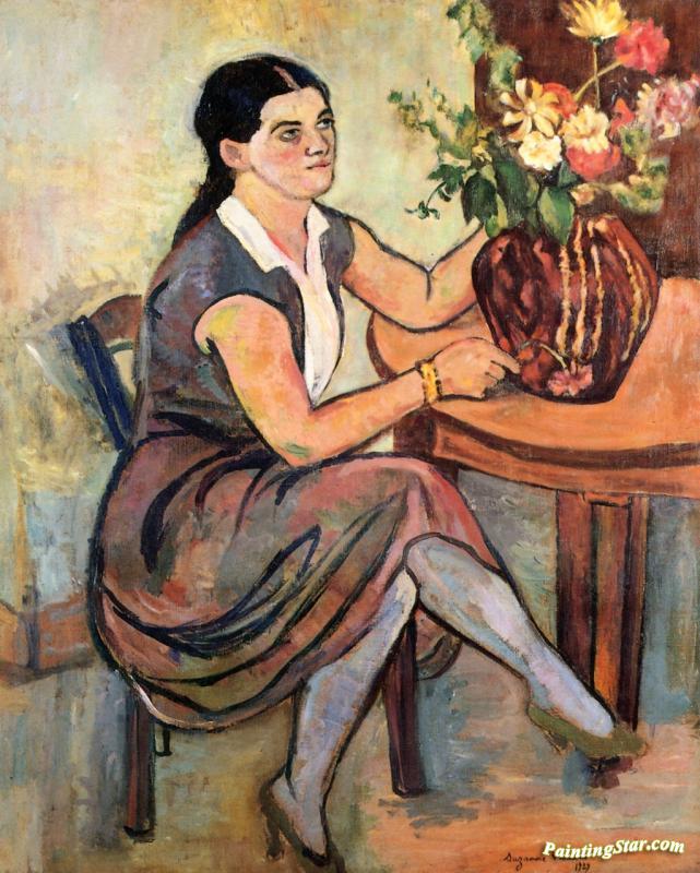 Woman Seated By A Bouquet Of Flowers, Art Painting by Suzanne Valadon