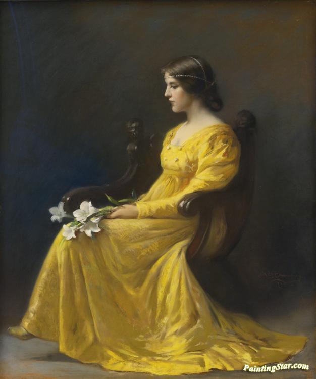 Woman Seated Holding Lilies, Art Painting by James Wells Champney