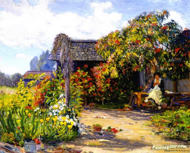 Woman Seated In The Garden Sewing, Art Painting by Joseph Kleitsch
