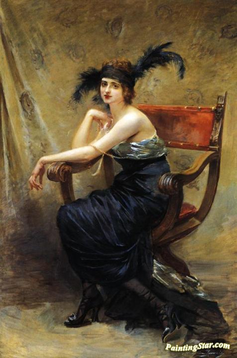 Woman Sitting in a 'Dagobert' Armchair, Art Painting by Madeleine Jeanne Lemaire