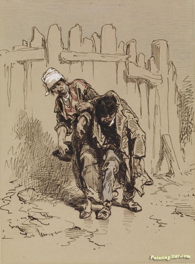 Woman Supporting A Man, Art Painting by Paul Gavarni