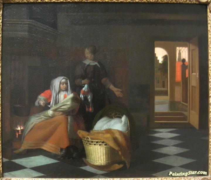 Woman with a Child and a Maid in an Interior, Art Painting by Pieter de Hooch