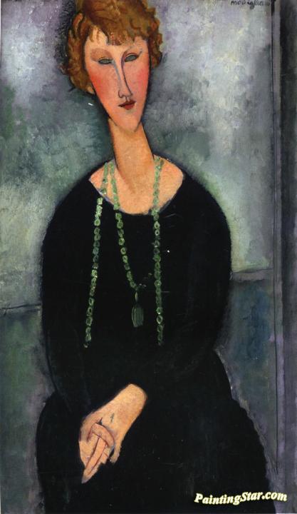 Woman with a Green Necklace, Art Painting by Amedeo Modigliani
