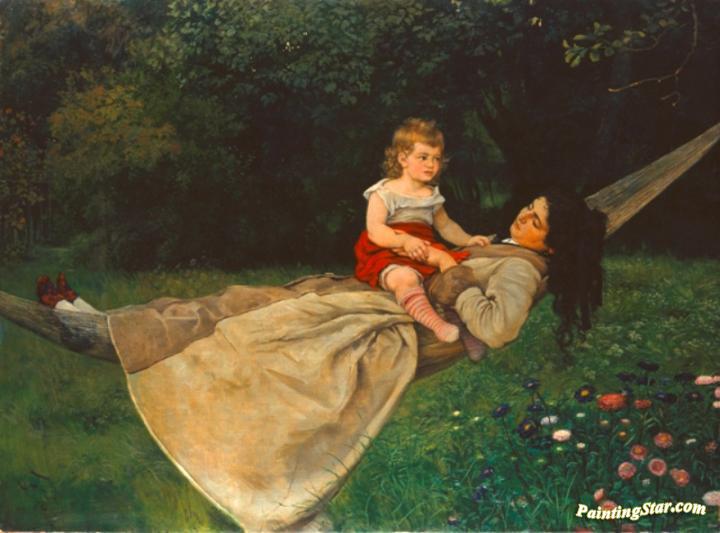Woman with child in hammock, Art Painting by Hans Thoma