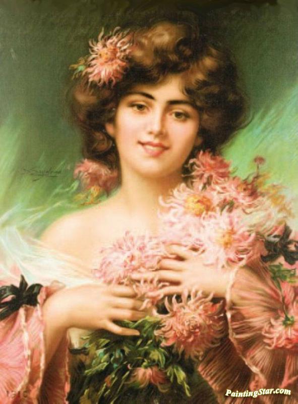 Woman With Chrysanthemums, Art Painting by Delphin Enjolras
