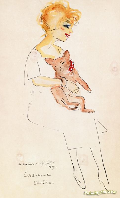 Woman With Dog, Art Painting by Kees Van Dongen