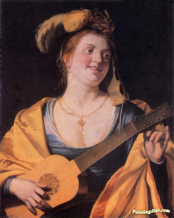 Woman With Guitar(1631), Art Painting by Gerard van Honthorst