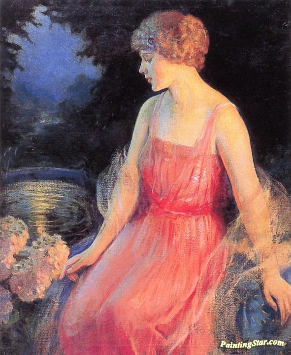 Woman with Hydrangeas, Art Painting by Frank H. Desch