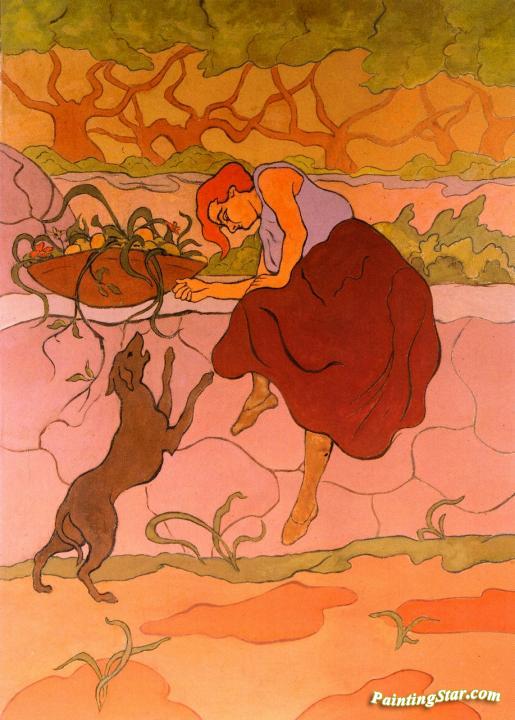 Woman with Jumping Dog, Art Painting by Paul Ranson